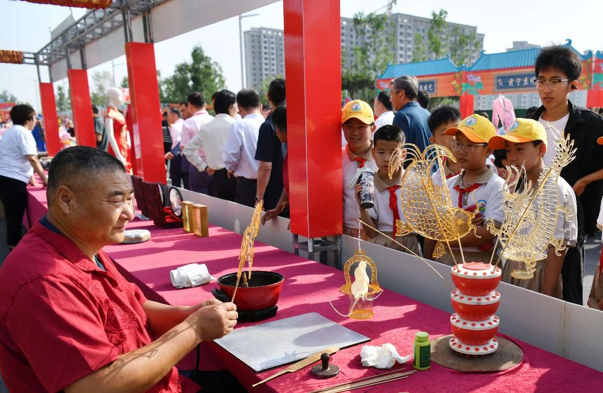 6月6日,一场别开生面的非遗展演展示活动在河北省沧州市肃宁县科创中心广场举行。来自全县的50余项非遗项目为人们献上了一场文化大餐。肃宁县文化底蕴深厚,非遗资源众多。近年来,经过当地文化部门的深入挖掘和扶持,很多濒临消亡的“绝活”重新焕发活力。(光明日报全媒体记者耿建扩 陈元秋 通讯员 苑立伟)